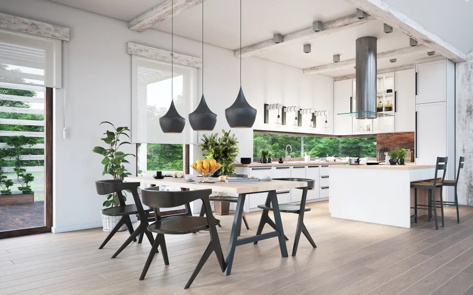 “De zeer royale woonkamer loopt over in de gezellige leefkeuken met aparte bijkeuken. ”